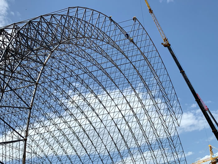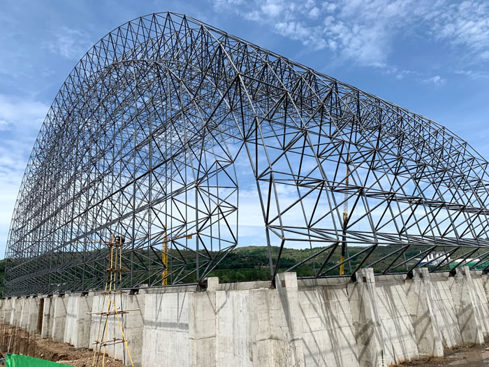 (2)网架加工前应对现场尺寸进行复测,确认无误后方可进行加工、安装;网架制作、运输、安装应遵守《空间网格结构技术规程》JGJ7-2010、《钢网架乐陵螺栓球节点》JG/T 10-2009、《钢网架乐陵螺栓球节点用高强度螺栓》 GB/T 16939-2016、《乐陵钢结构乐陵工程乐陵施工规范》 GB50755-2012、《乐陵钢结构乐陵工程施工质量验收标准》 GB50205-2020。